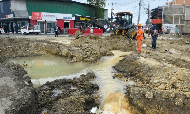 Otra avería en línea de 8 pulgadas provocada por empresa trabaja en solución vial KM 9 autopista Duarte.