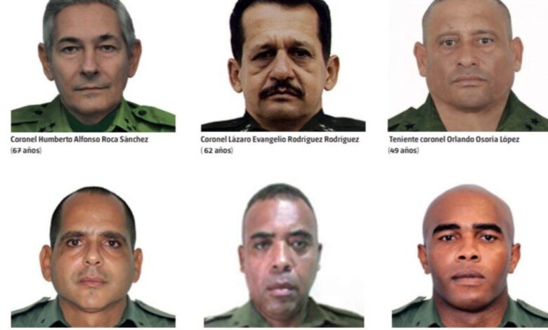 Nombres como el coronel Humberto Alfonso Roca Sánchez, de 67 años; el mayor Rodney Izquierdo Valdés, de 51; el capitán Yoel Pérez Tabares, de 48; el teniente coronel Orlando Osoria López, de 49; y el suboficial mayor Suriel Godales Alarcón, de 42, conforman la lista.