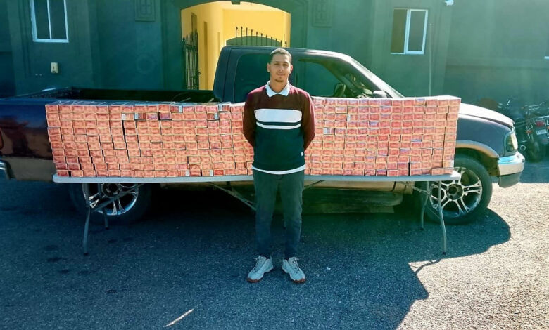 Durante la inspección del vehículo, las autoridades ocuparon trescientos 343 paquetes de cigarrillos marca Capital, conteniendo cada paquete 10 cajetillas de 20 unidades cada una, para un total de 68,600 cigarrillos.