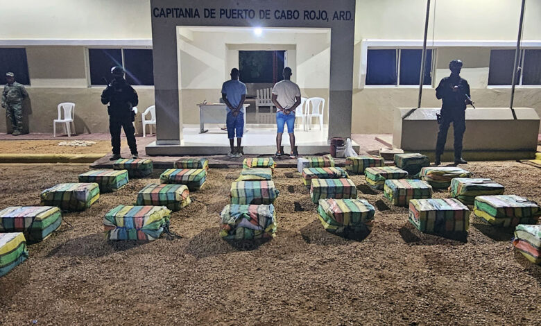 Según la agencia antidrogas, luego de más de 15 horas de intenso seguimiento, las unidades aéreas, marítimas y terrestres interceptaron, a varias millas náuticas al sur de Cabo Rojo, una embarcación sin nombre ni matrícula, con dos dominicanos a bordo, ocupando 26 sacos que contenían un total de 863 paquetes de la presunta droga, forrados con cinta adhesiva y con distintos logotipos.