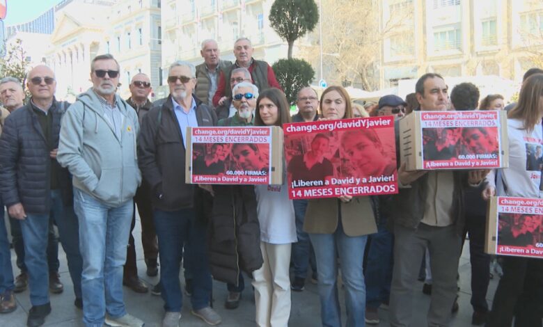 Amigos y familiares de David y Javier se han concentrado a las puertas del Congreso de los Diputados para pedir su liberación