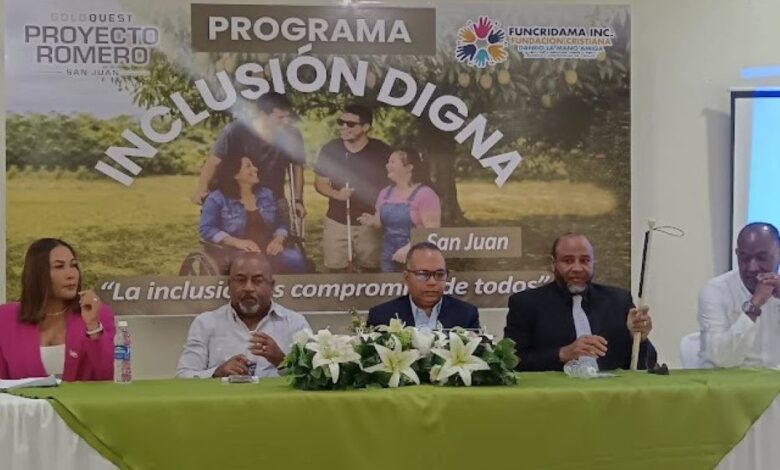 SAN JUAN DE LA MAGUANA, RD.- La empresa minera GoldQuest y la Fundación Cristiana Dando la Mano Amiga, realizaron el lanzamiento del programa conjunto Inclusión Digna, dirigido básicamente a personas con discapacidad.