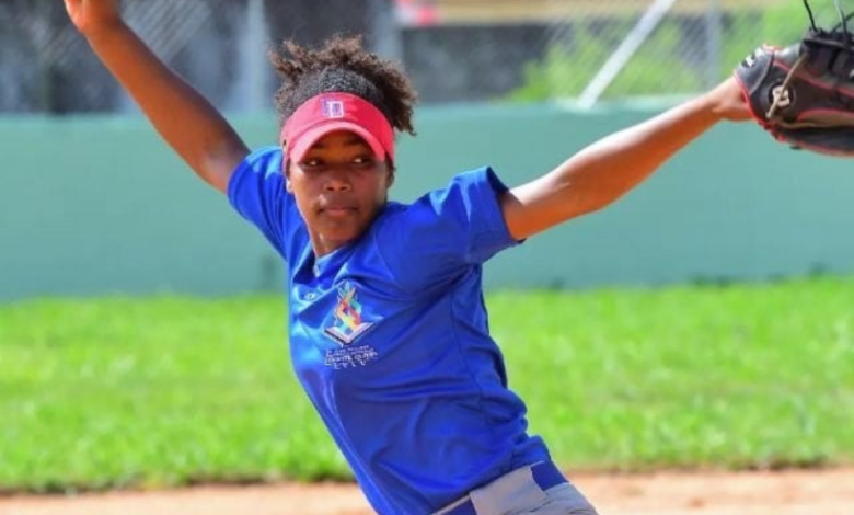 -La lanzadora Jelina Medina, residente en los Estados Unidos, categoría sub-18, una promesa del softbol femenino en la República Dominicana.