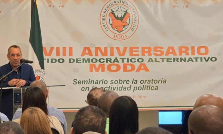 El seminario «La oratoria en la actividad política e historia del partido Moda», que se impartió en el marco de las festividades por el 18 aniversario de la creación del partido, proporcionará los conocimientos necesarios para que los dirigentes estén en capacidad de construir confianza, difundir ideas y movilizar masas, según explicó el presidente del partido Democrático Alternativo (MODA), Dr. Elsido Díaz.