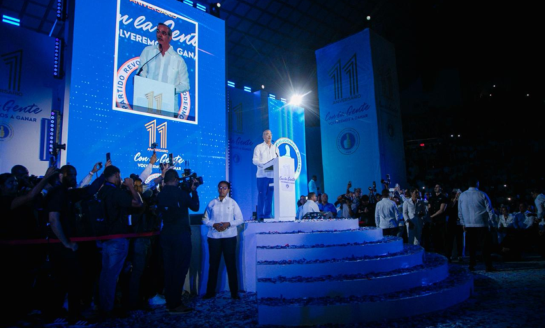 Santiago.— El presidente de la República y líder del Partido Revolucionario Moderno (PRM), Luis Abinader, destacó los avances alcanzados en áreas estratégicas del país, incluyendo institucionalidad, seguridad, educación, desarrollo económico, transparencia e infraestructura, reafirmando su compromiso con el progreso sostenido y la modernización de la República Dominicana, durante la celebración del 11 aniversario de la organización política en la Gran Arena del Cibao.