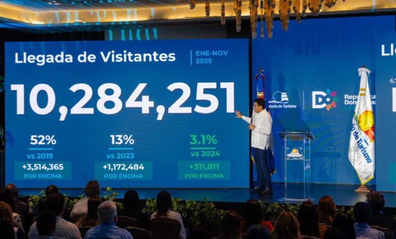 SANTO DOMINGO, RD.- República Dominicana recibió 10,284,251 visitantes en los primeros 11 meses de este año, lo que garantiza un cierre récord en llegada cuando finalice este 2025, informó el ministro David Collado.