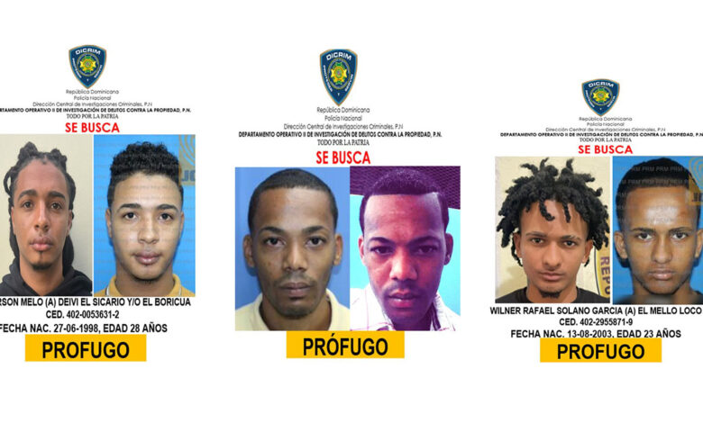 Entre los prófugos buscados figuran Wilmer Rafael Solano García (El Mello Sangriento), Wilner Rafael Solano García (El Mello Loco), Anderson Melo (Deivi el Sicario y/o El Boricua), y Wilkyn Jonathan Báez de los Santos (El Mocho), quienes son considerados altamente peligrosos y presuntamente se encuentran fuertemente armados.