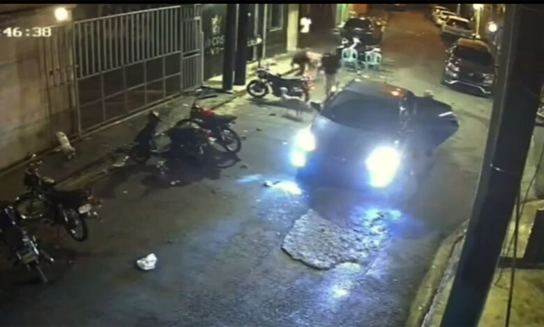 La Policía Nacional confirmó lo que se ve uno de los videos que circulan en las redes sociales de que los pistoleros se desplazaban en un vehículo color azul.