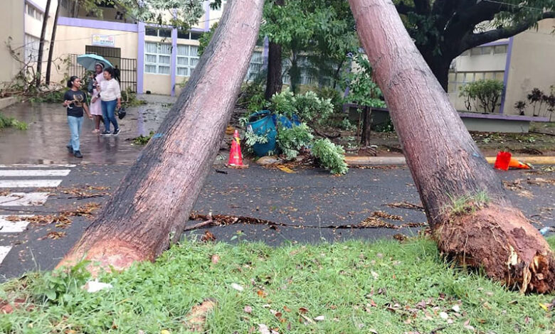En el campus de la Universidad Autónoma de Santo Domingo se registraron derribo de árboles y daños a edificios.