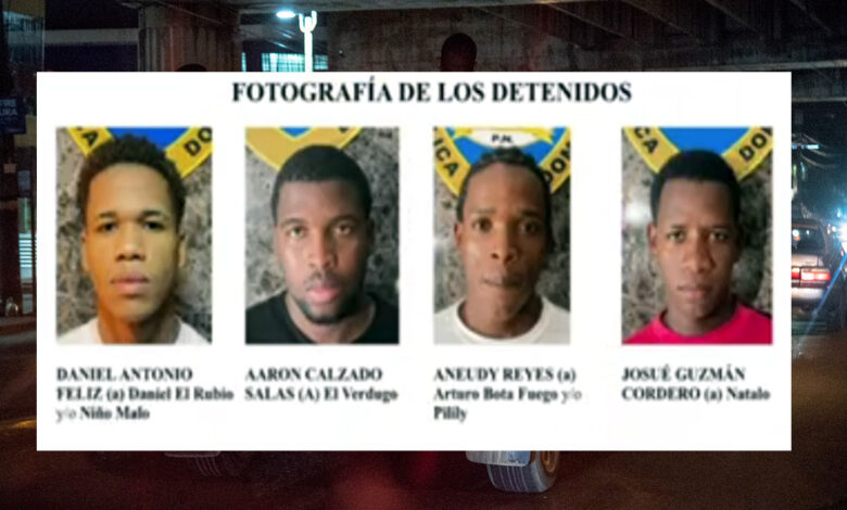 Se trata de Daniel Antonio Feliz Decena (Daniel El Rubio y/o Niño Malo), de 21 años; Aarón Calzado Salas (El Verdugo), de 23; Aneudy Reyes (Arturo Bota Fuego y/o Pilily), de 22, y Josué Guzmán Cordero (Natalo), de 20, todos residentes en distintos sectores de Santo Domingo Este, quienes eran buscados de manera activa por múltiples hechos delictivos.